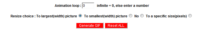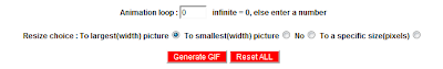 Este apartado es un poco más complicado. En primer lugar tenemos el apartado de Animation loop. Aquí seleccionáis cuantas veces queréis que se repita la animación. Si lo dejáis en 0 se repetirá todo el rato. Así es como lo he dejado yo. Debajo tenéis otras opciones. Sirven para escoger el tamaño del GIF. La primera opción es hacerlo grande, la segunda es hacerlo pequeño, la tercera supongo que será dejarlo en su tamaño natural y la cuarta te deja escoger tamaño. Así que es cuestión de ir probando.